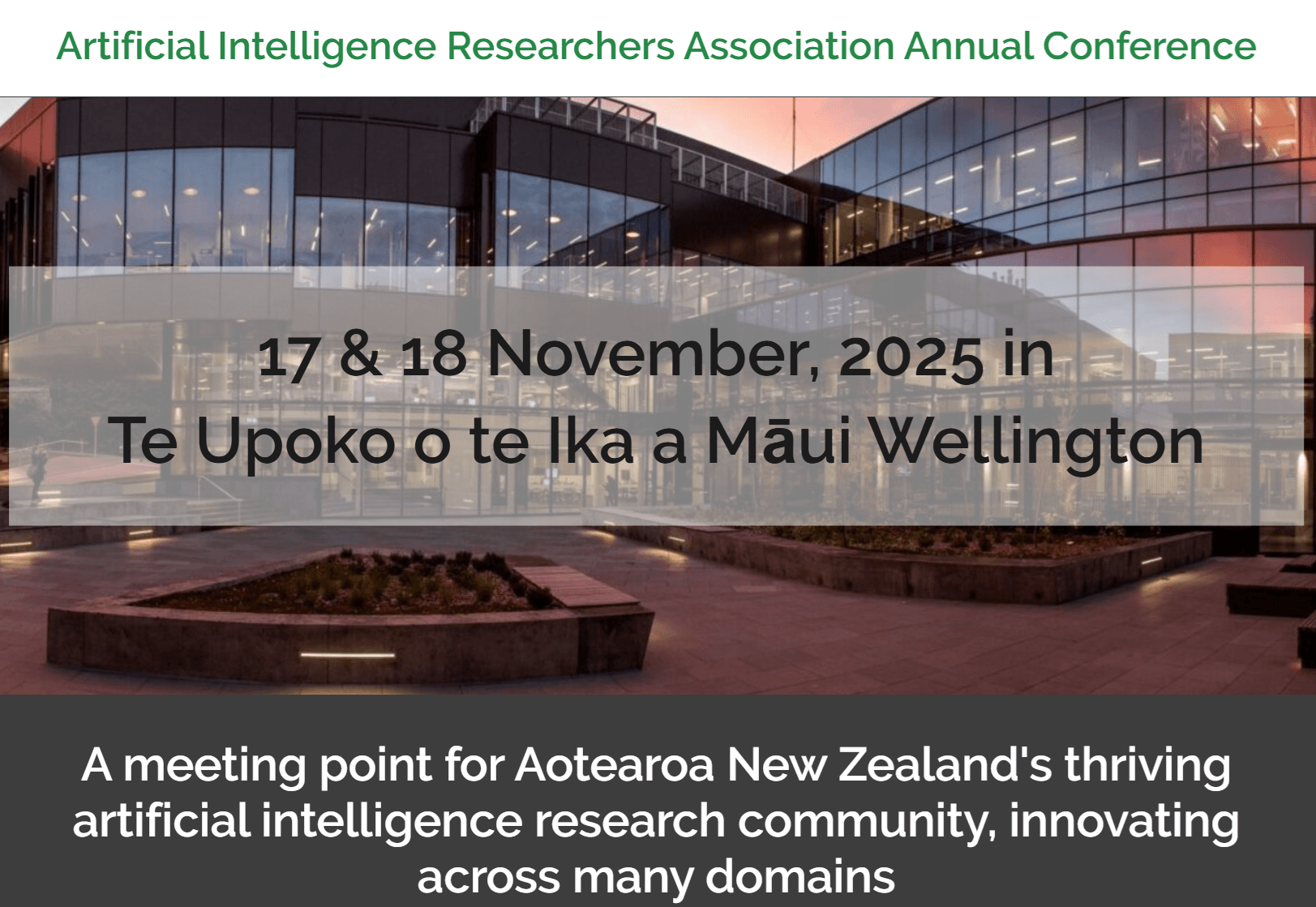 The 4th annual Artificial Intelligence Researchers Association Conference will be hosted by Te Whiri Kawe | Centre for Data Science and Artificial Intelligence at Te Herenga Waka | Victoria University of Wellington.